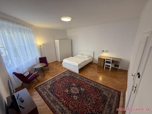 Ponúkam na prenájom priestrannú izbu (28 m²) vo veľkom, zrekonštruovanom byte v tichej lokalite priamo v centre Bratislavy, v blízkosti Šafárikovho námestia.